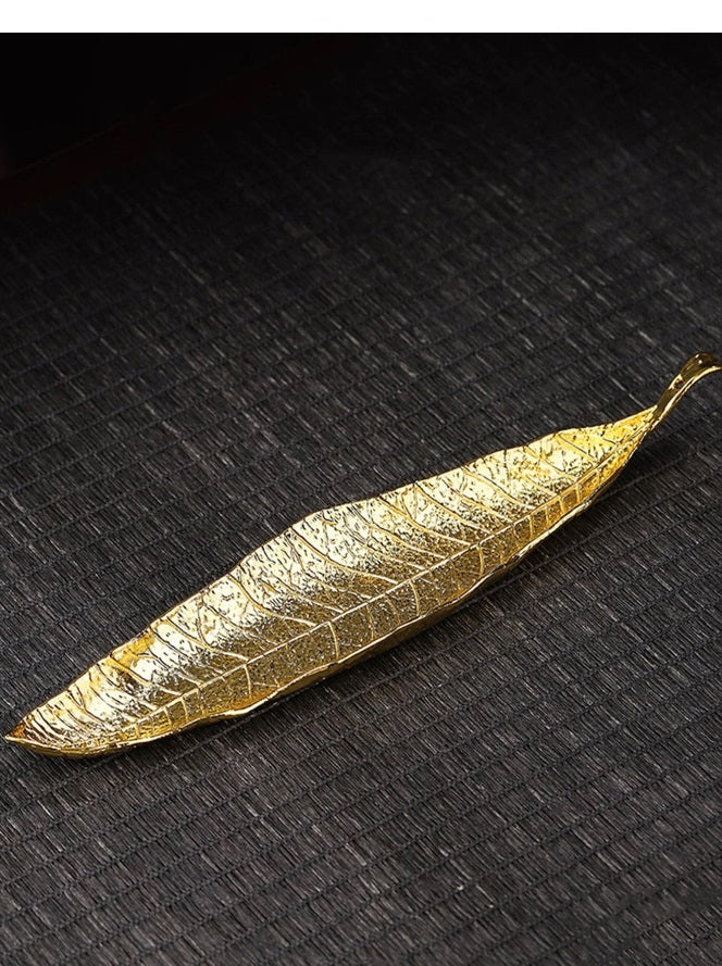 Reusable Zinc Alloy Incense Stick Holder,Creative Gold Color Leaf Design Durable Incense Stick Stand